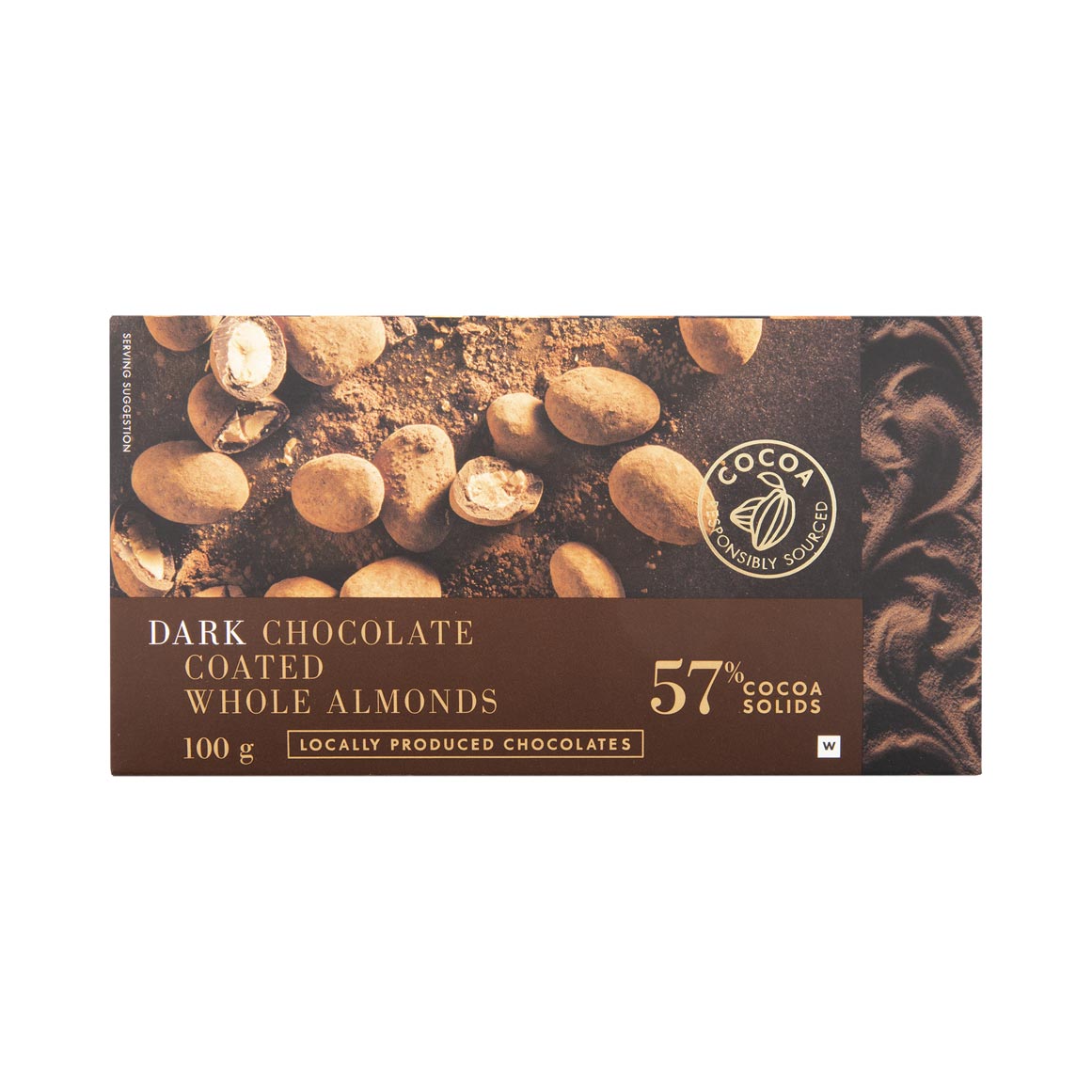 WOOLWORTHS DARK CHOC COATED WHOLE ALMONDS 100G